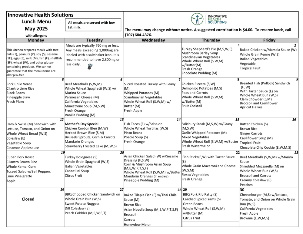 **Ineligible but interested participants are welcome to join for a $7 fee at the time of lunch service.